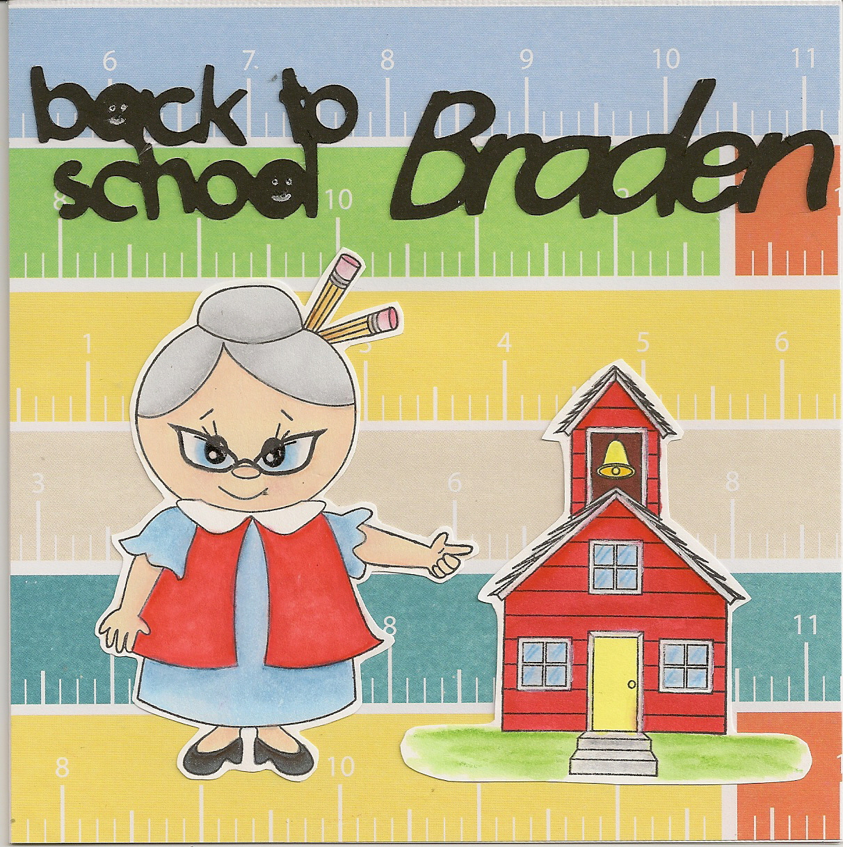 The boy and girl were both cut with my Cricut using Paper Doll Dressup. 3″ x 2.25″, accessories to match. Wording – Jasmine Font.