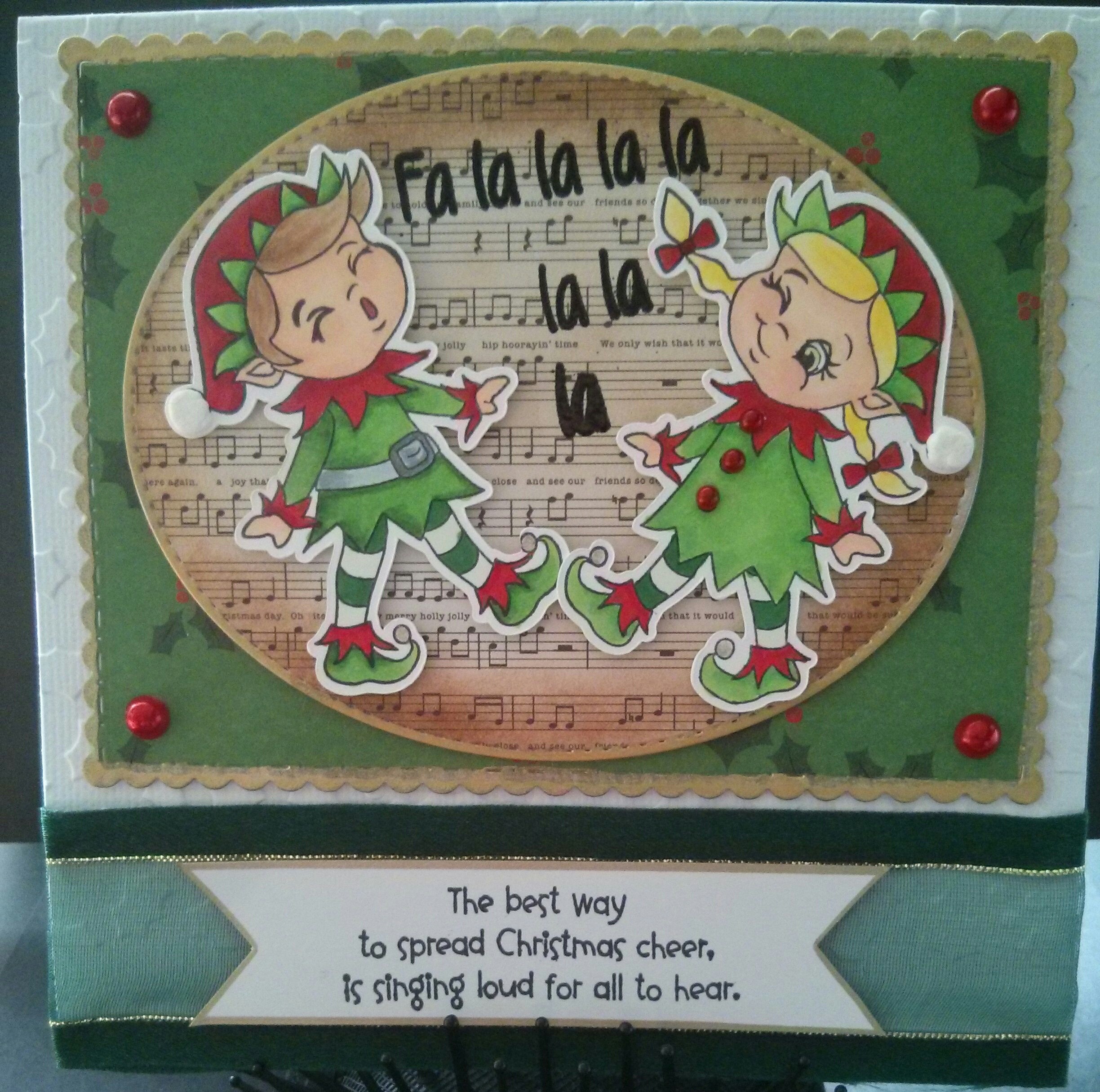 Stamped image with Memento – Tuxedo Black ink. Coloured with a mixture of Copics and Spectrum Noir Alcohol Markers. Then used Wink of Stella – Clear on the Christmas tree balls and earrings.