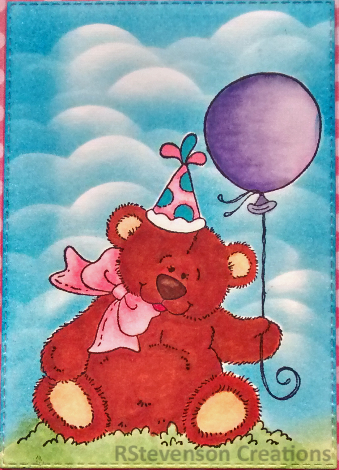 To make this card, I printed out the image in grayscale and then coloured the image in using PrismaColor Premier pencils and Gamsol. I cut out the image using My Creative Time -Stitched Squares Inside and Out and then went around the edges with Tim Holtz Distress Inks – Dusty Concord.