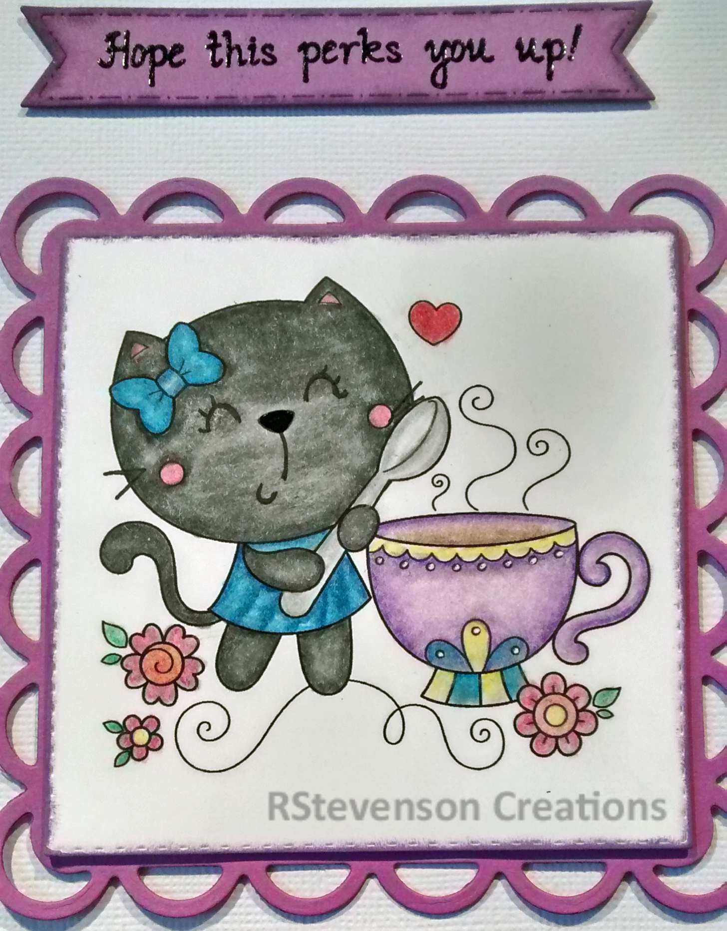 Back to share another card with you. It is a freebie from Craftin Desert Diva’s called Coffee Time Kitty. I was hoping to share it in the Coffee Blog Hop too, but I was a little late! LOL!