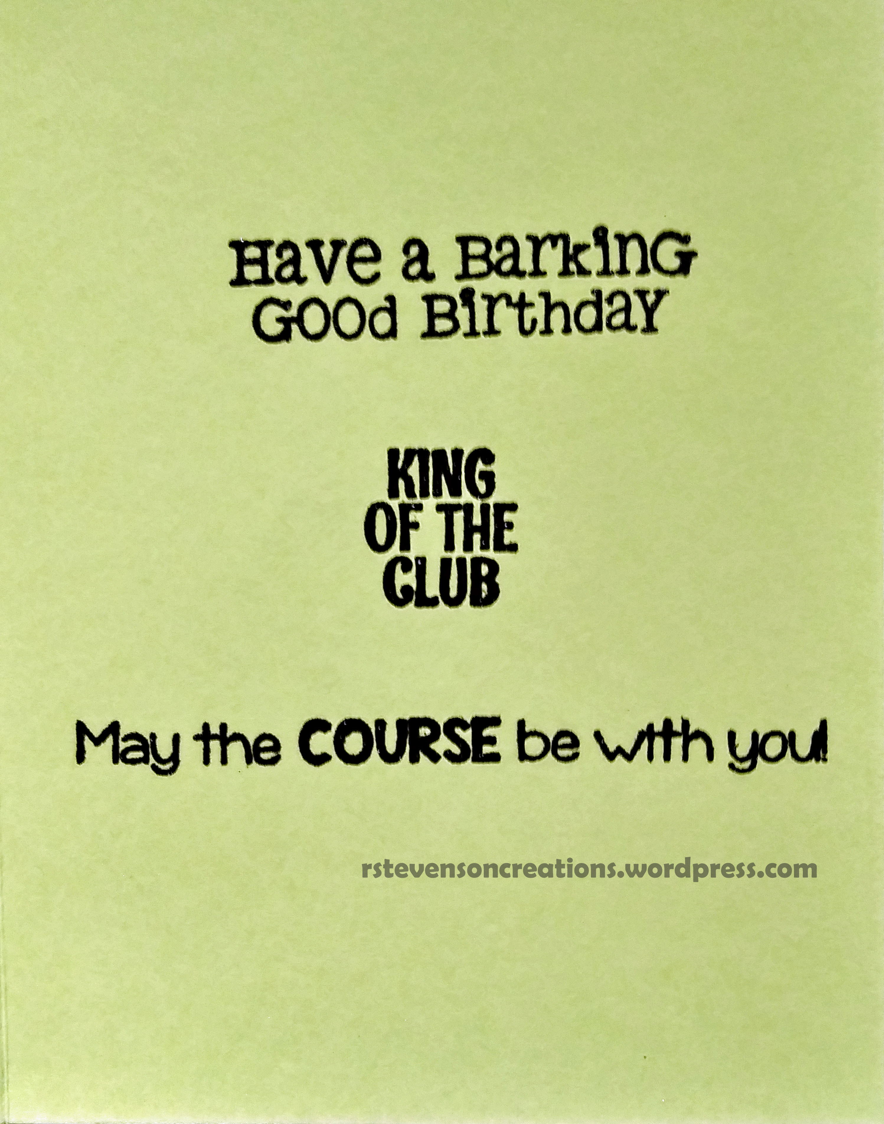 My husband loved his card. He said he was laughing all day about the sentiment “May the course be with you!”