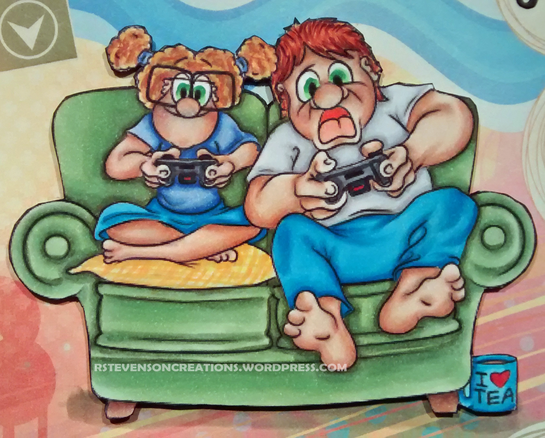 Sharing a card that I made for my nephew who loves gaming. I do too! Nowhere quite as good as him with XBOX, but I get by. LOL! Candy Crush and Backgammon are my favourite games.