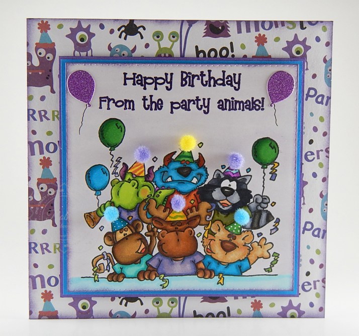 For the card I chose the stamp by “Sherri Baldy – My-Besties Stamps“. I stamped the image using Memento Ink, Copic Marker X-Press It Blending Card and MISTI – Most Incredible Stamping Tool to get a nice crisp image. The image was then coloured in with Copic Markers and edged with Tim Holtz Distress Ink – Picked Rasberry around the image frame, balloon and also the card.