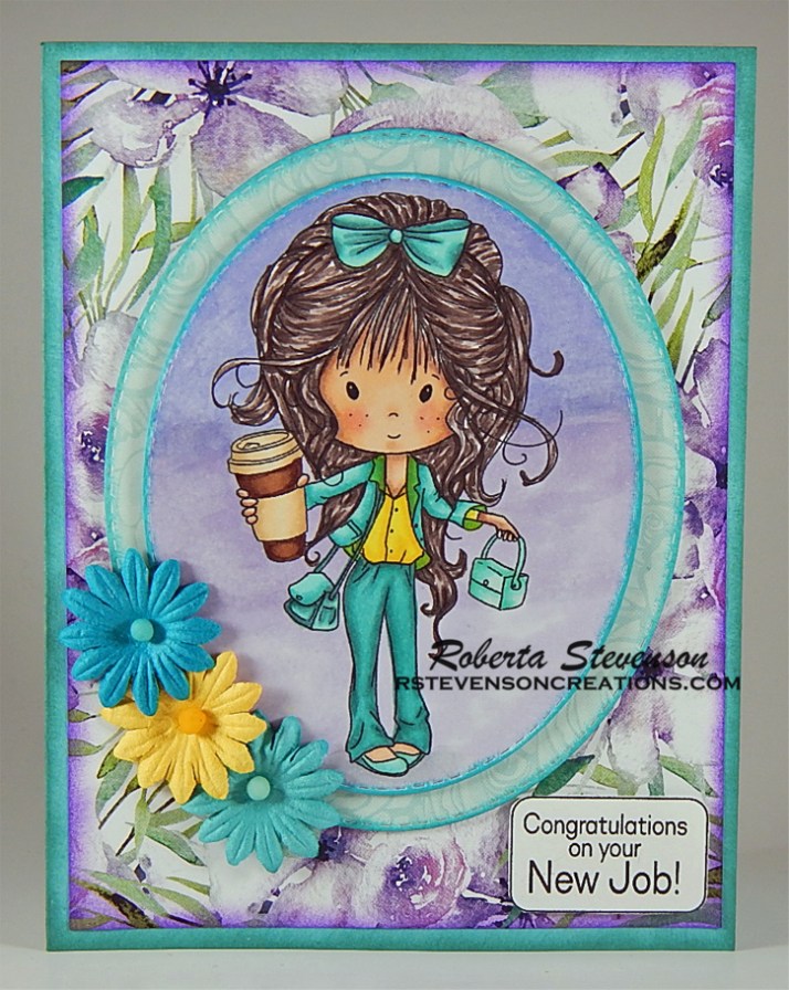 I made her card using the digital stamps from Polkadoodles called, New Job – Polkadoodles Digital Stamp and Skys the Limit – Polkadoodles Digital Stamp.