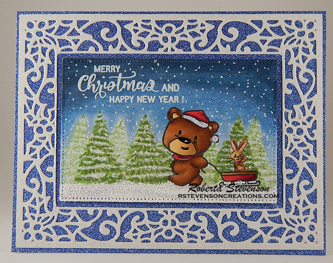 Die Cuts: Poppy – Simple Snowflakes (Style 1931), Craftin Desert Diva’s – Tag Essentials Dies, Craftin Desert Diva’s Fancy Frames, Lawn Fawn – Stitched Hillside Borders, American Crafts – Wonderland Collection – 6 x 6″ (15.2 x 15.2 cm) paper pack