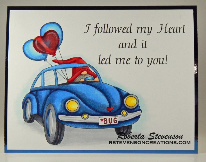 Today, I’m sharing a simple card that I made using the stamp and sentiment from Lovebug Gnome (KLM Digital Designs)! This little gnome driving his car and the sentiments with this stamp could be used for Valentine’s Day, Anniversary or just as a note to let someone you really care about how much you love them!