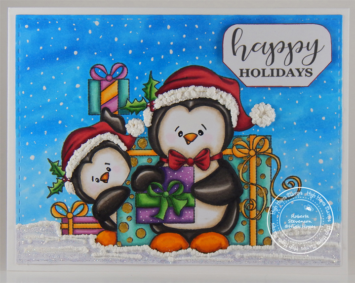 It’s Wednesday, and this week, I made a Christmas card using Christmas Penguins – TDG004 by High Hopes Rubber Stamps for the main image and Happy Holidays – FDG006 (High Hopes Rubber Stamps) for the sentiment. This is just a sneak peek to all of the wonderful images coming soon on Monday, December 6, 2022 as we celebrate our Woodland Winter Release for the month of December at High Hopes Stamps.