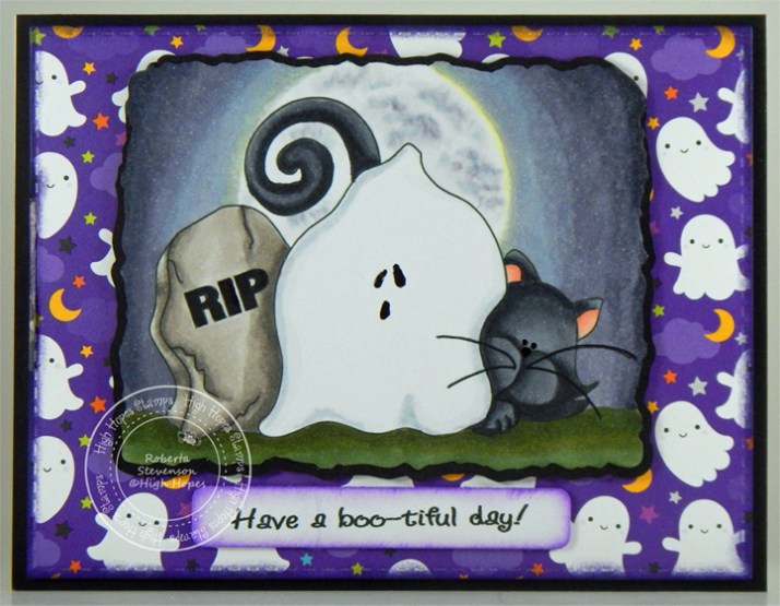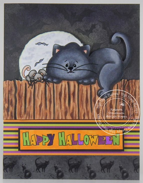 It’s Wednesday, and this week, I made a Hallowe’en card using High Hopes Rubber Stamps By The Moonlight – TT047 for the image and Block Happy Halloween – FF049 for the sentiment. These little friends are ready for some spooky fun on Hallowe’en.