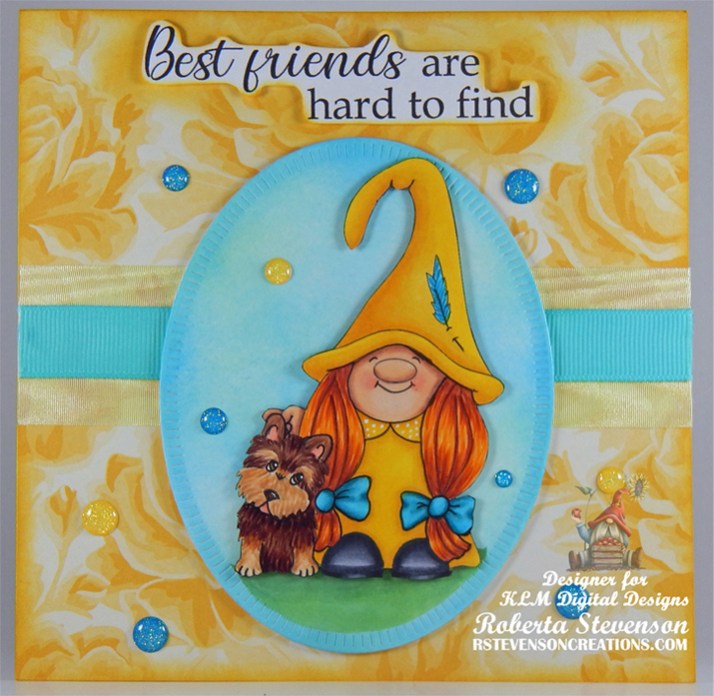 I stamped the main image and sentiment onto Copic Marker X-Press It Blending Card cardstock using my MISTI and Memento – Tuxedo Black ink. The main image was a little short for the full width of the card so I added some double-sided tape to a couple scraps of Copic Marker X-Press It Blending Card cardstock and adhered them to both sides of the fence. The image and sentiment were then both coloured in. The image was fussy cut and U-Line double-sided tape was applied to it. I popped it up onto the card and then cut off the excess from the fence on both sides. I cut around the sentiment and then ran it through my Xyron Create a Sticker and applied it to a piece of Recollections – Black cardstock. Once again, I used my cutter to go around the sentiment, leaving a slight border. U-Line double-sided tape was applied to the back of the sentiment and it was popped up onto the striped paper background to complete the card.