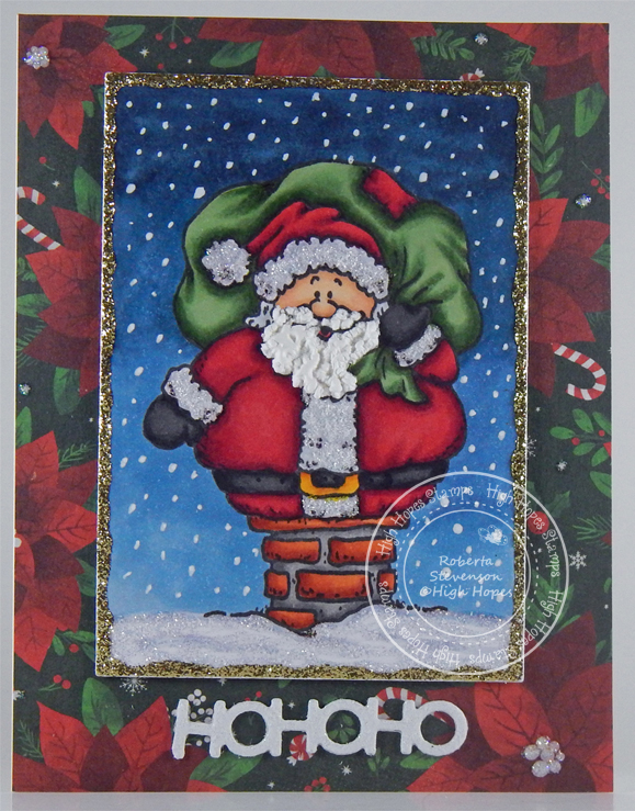 It’s Wednesday, and this week, I made a Christmas card using High Hopes Rubber Stamps Santa In Chimney – S202 for the image. Christmas is only a few months away, so I’m busy making more Christmas cards for this year to give away! How about you?