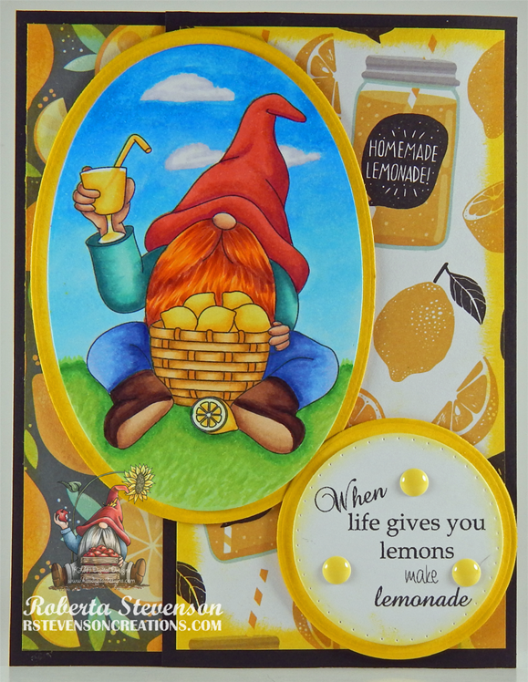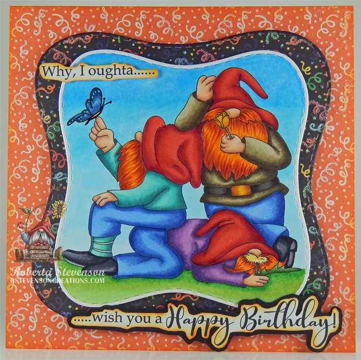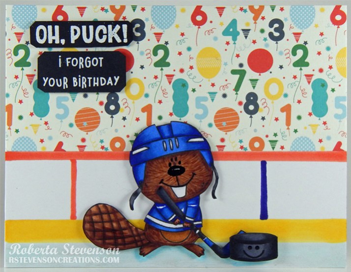 The image and sentiment were imported into Microsoft Word and printed out onto Copic Marker X-Press It Blending Card. The paper was cut to be 5-5/8″ x 2-5/8″ and everything was coloured in. U-Line Double-Sided tape was added to this and it was popped up onto the die cut. I ran the bone die cuts through my Xyron Create a Sticker and attached them to the card to finish it off.