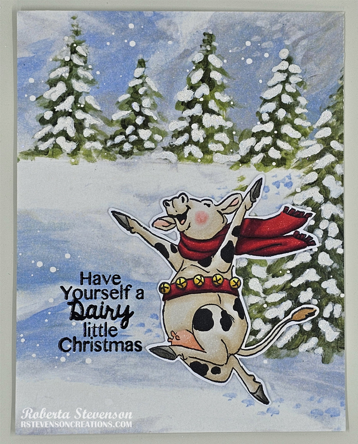 Today I’m sharing another Christmas card using Art Impressions – Dairy Christmas Set (4789) that I made for some very nice people that I met on a cruise. We have kept in touch over the years and they own a dairy farm, so I thought this would be a very cute card to send to them.