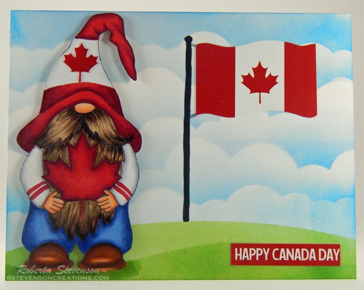 Once this was completed, I removed the mask and began to colour in the water and sand. It was now time to colour my gnome. I unfortunately colured the first layer for the bottom of the beard blue, thinking it was part of the robe he was wearing. Uggggh! I didn’t want to start over, so I just finished colouring the mustache with my Copic markers and then tried to see if I could use the same colours to colour over the blue. ItĀ didn’t quite work out a 100%, so I decided to use my PrismaColor Pencils to colour over top of the Copic markers. This seemed to fix it. I moved on to finish the rest of image.