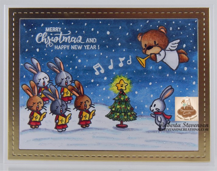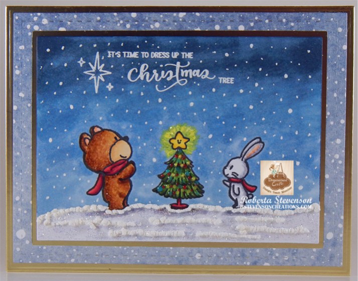 Today, I’m sharing a Christmas card that I made using Dreamerland Crafts stamps called The Most Exciting Moment – D18035. This image reminds me so much of me and my brothers opening our gifts together every year in front of the Christmas tree.