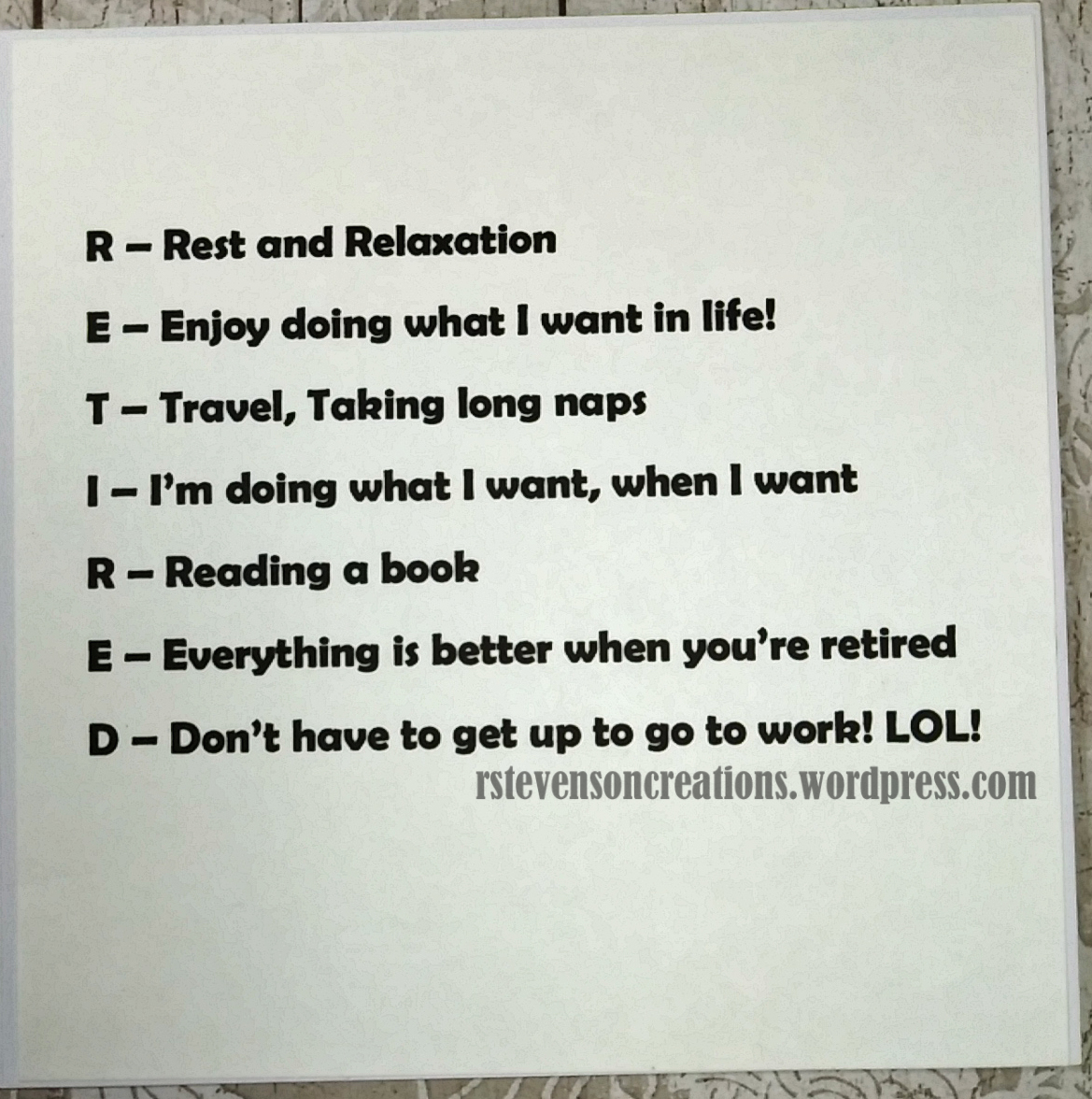Today I’m sharing a retirement card that I made for my co-workers who were on my immediate Systems Administrator’s team and also the Networking team whom I had worked closely with over the last 13.5 years. Each of the card fronts were created using various stamps from Art Impressions – Pack Your Bags Set.