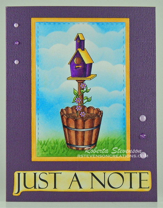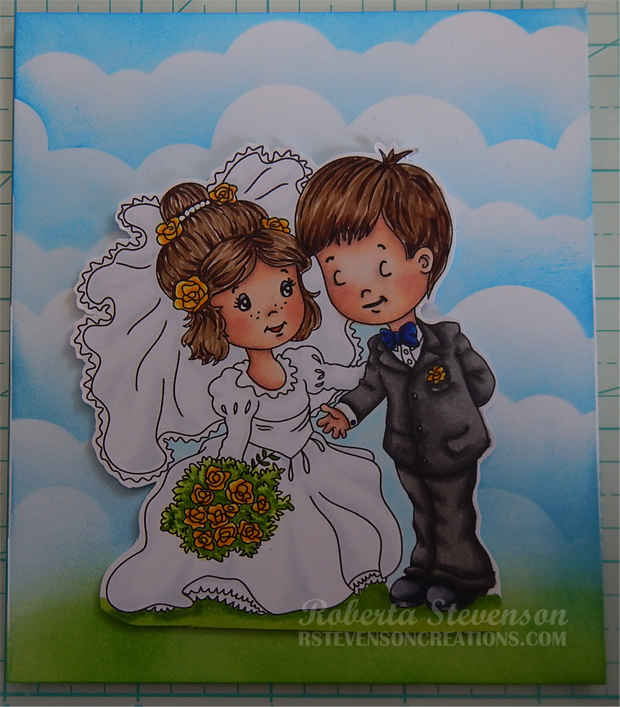 The base card was created to the size of 4.25″ x 5.5″ out of Hammermill – Premium 110 lb. cardstock. Using Tim Holtz Distress Oxide Ink – Salty Ocean and a blending brush, I applied the clouds in the sky with stencils that I had made previous using Avery Elle – Pierced Clouds Die. The grass was added in using Tim Holtz Distress Oxide Inks – Mowed Lawn and Lawn Fawn – Clippings – Slimline Grassy Hillside Stencils.