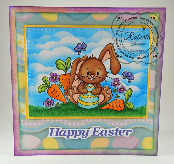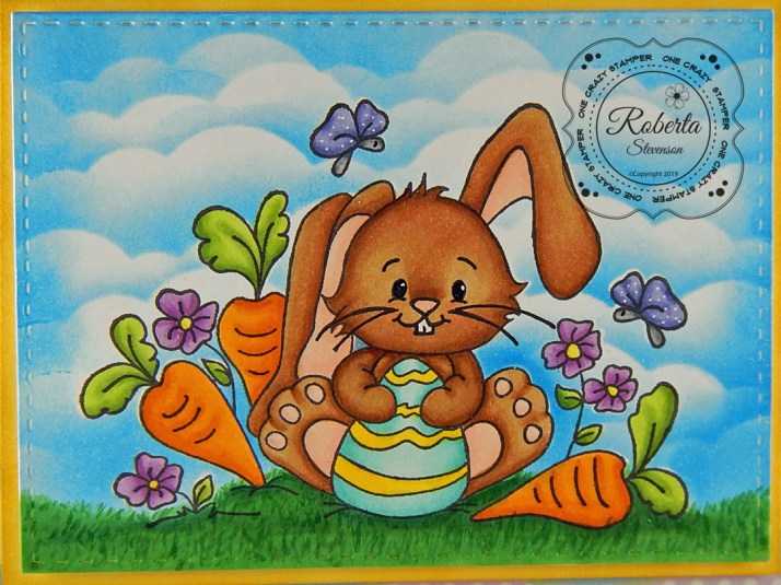 The main image was stamped onto Copic Marker X-Press It Blending Card and then coloured in with Copic Markers. I left the die cut metal frame on while I coloured the image. Once, the coloured image was done, I was ready to add some clouds. To do this, I stamped the image again onto some Post-It paper and then cut it out to create a masked image. I layered this on top of the pig and Valentine’s boxes and then created the clouds in the background using various blues from Tim Holtz Ranger Distress Ink and a stencil that I created using Avery Elle – D-05-01 PiercedCloudsDie.
