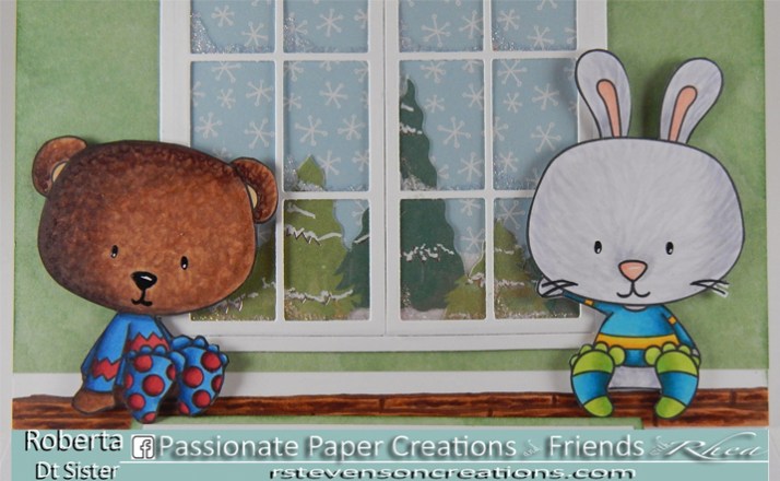 With Memento – Tuxedo Black ink and my MISTI, I stamped all of the images and the sentiment onto Copic Marker X-Press It Blending Card. I coloured in all of the images with Copic markers listed below. Once this was completed, the images were all cut out using Art Impressions – MB Nursery – 5495 dies and the pop-ups were adhered to the card with double-sided tape. The window frames, Baby Blocks and Wording were applied using liquid glue. I stamped the sentiment onto some white cardstock with Versa Fine – Onyx Black ink and applied Ranger – Clear Super Fine Detail embossing powder. This was heat embossed using a Marvy Uchida – Embossing Heat Tool.