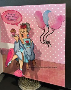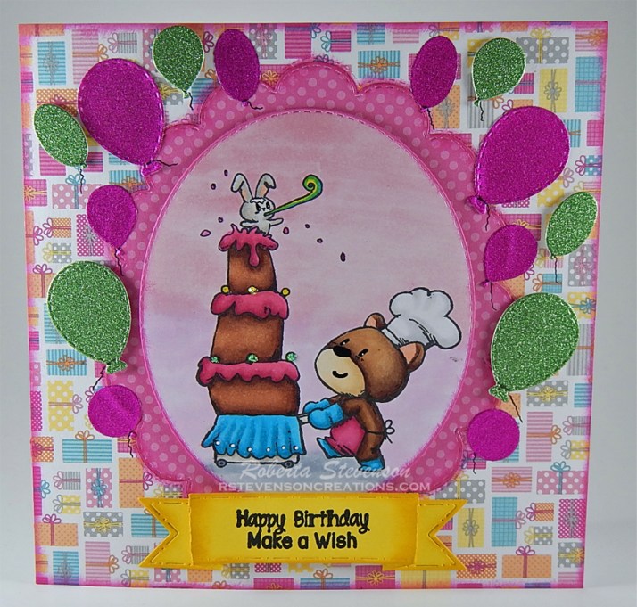 Today I’m sharing a card that I made with this little bear serving up a nice big cake for a very special person. I used Super Tall Cake Dreamerland Crafts Clear Stamps and Birthday Sentiments Set 002 Dreamerland Crafts Clear Stamps to create this card.