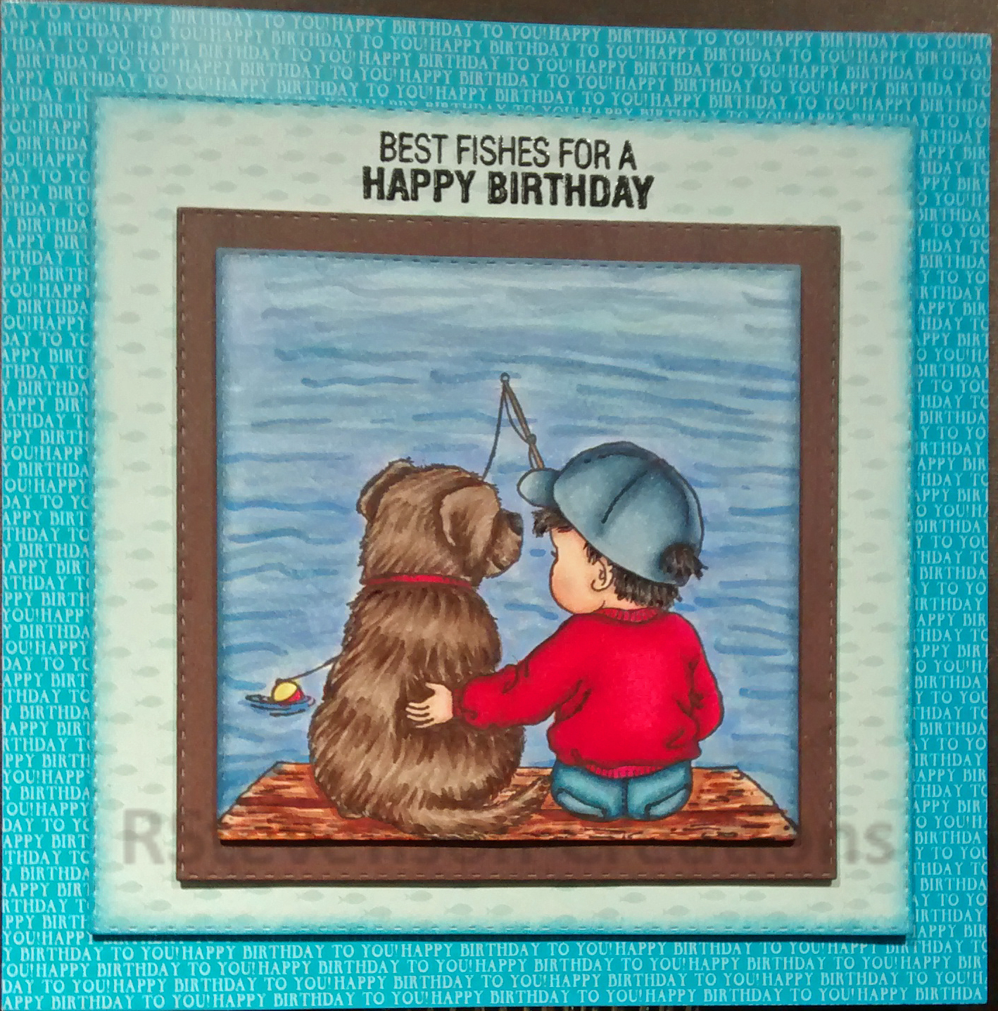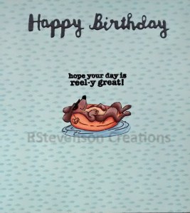 Sharing a birthday card that I made for my older brother this year! He loves his camp and fishing. His dog is usually by his side and so I thought I would make him a nice fishing themed card this year.