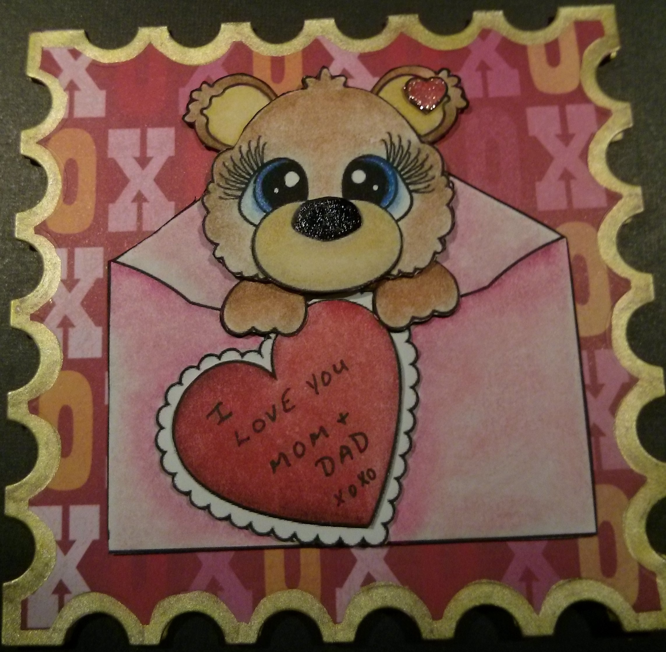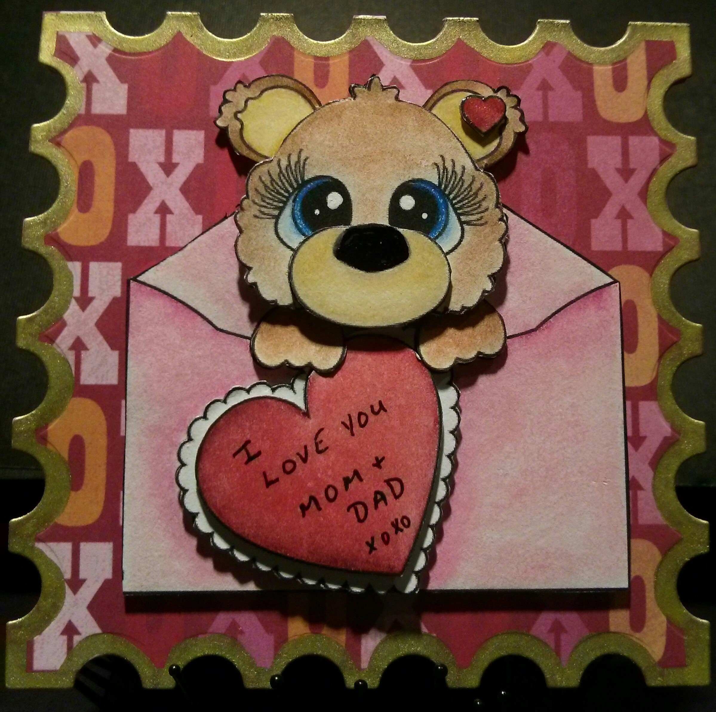 Back to share another card that I made for Valentine’s Day. Since my parents live so far away, I thought these 2 digi stamps from Craftin Desert Diva’s would be perfect for a simple little Valentine’s card for them.
