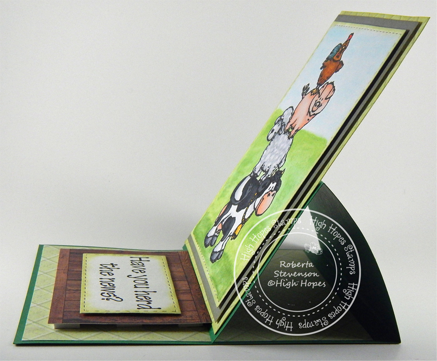 It’s Wednesday, and this week, I used Peg Leg Pete – R088 (High Hopes Rubber Stamps) for the main image and Pirates Birthday – F147 (High Hopes Rubber Stamps) for the sentiment. Peg Leg Pete is showing off his map of previous adventures from his pirating days around the Caribbean. He’s gathered quite a treasure of findings. But, when you are a pirate, there is always more places and ships out there to plunder. LOL!