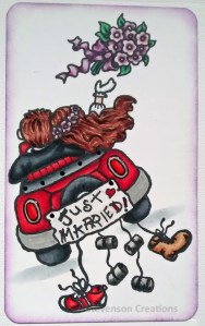 I also used the new Kraftin’ Kimmie Purple Pansy and Kraftin’ Kimmie Lovely Lagoon inks to acentuate the veins in the leaves and petals in the flowers. Also around the borders of the card and die cut. Sentiment is from Kraftin’ Kimmiee – Tweetie Pies.