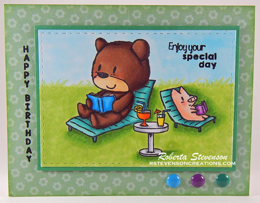 Today, I’m sharing a birthday card that I made using Dreamerland Crafts stamps called A Restful Afternoon – D19014 for the main image. For the sentiments I used a combination of Birthday 07 – DS17058 and Birthday 08 – DS17059. These 2 friends are sharing a nice peaceful afternoon in the sun just relaxing. What a wonderful way to spend a gorgeous day in the sun.