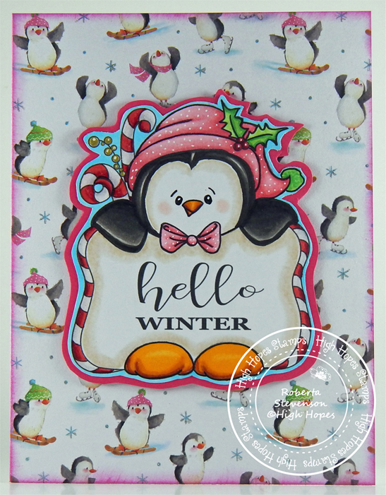 It’s Wednesday, and this week, I made a Christmas card using High Hopes Rubber Stamps North Pole Penguin – TDG008 for the main image and Seasons Greetings – F300A, for the sentiment. Christmas is getting nearer and this little penguin is helping Santa deliver some of your presents this year!